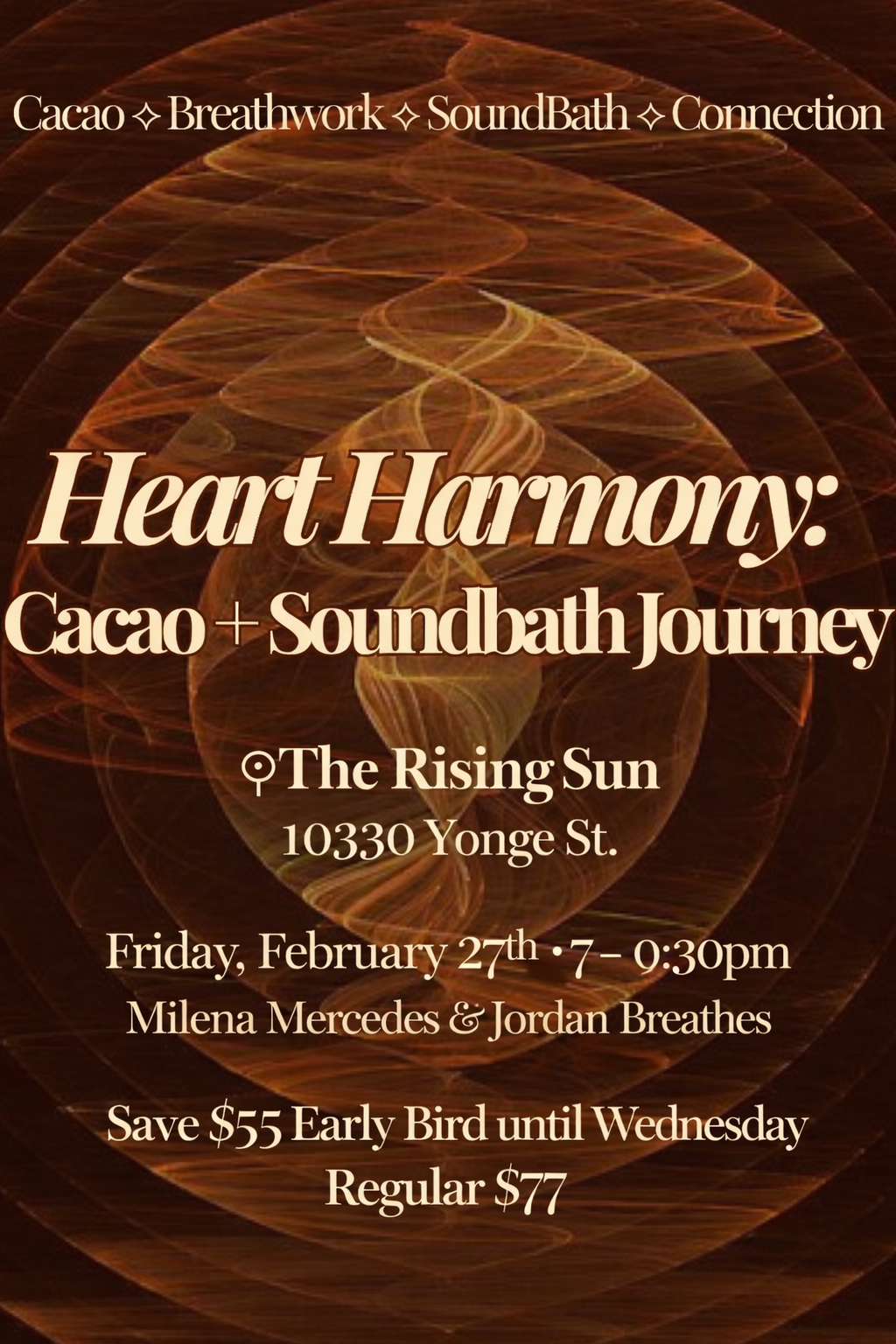 Cacao Love is a deep dive into the world of Breathwork and Cacao Ceremony. 2 sacred practice that blend together rather harmoniously! We take the time to conscious feel our hearts as we rejoice in Breath, Sound & Cacao Medicina