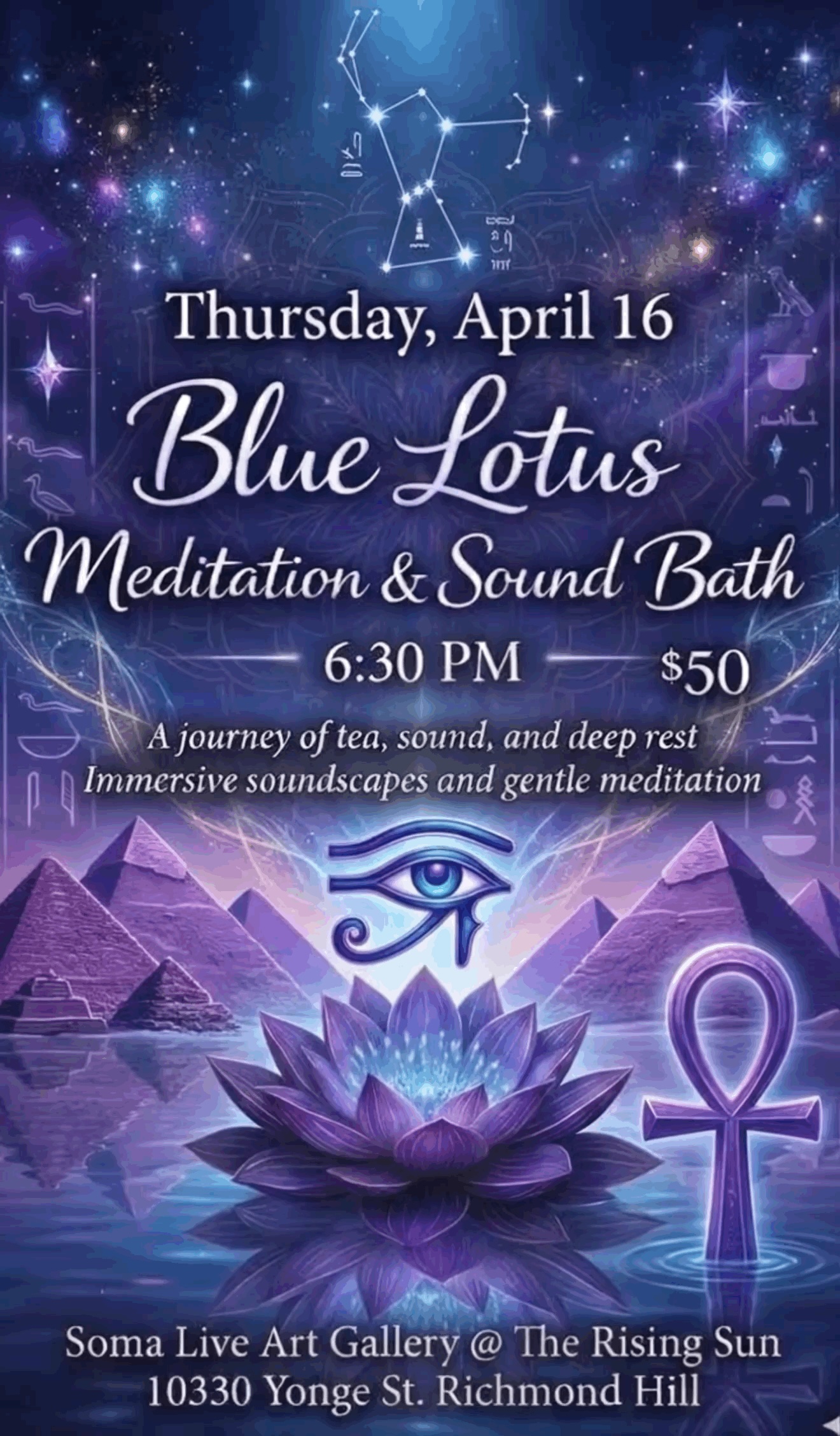 We are delighted to invite you to a deeply restorative evening at The Rising Sun — a Blue Lotus ceremony, sound bath, and guided meditation designed to soften the nervous system and reconnect you to your inner Light.