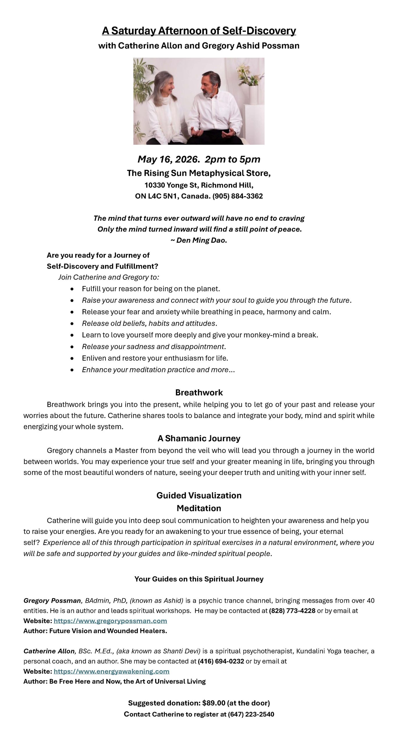TRS Workshops & Events Call The Rising Sun at 905-884-3362 to reserve a space in a workshop or event. Save/View PDF Flyer for this event Save/View PDF Flyer for this event Save/View PDF Flyer for this event